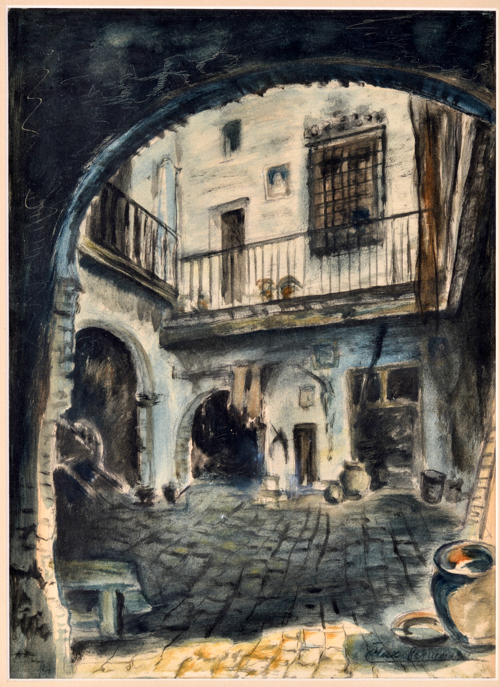 Rámované, paspartované pod sklom.