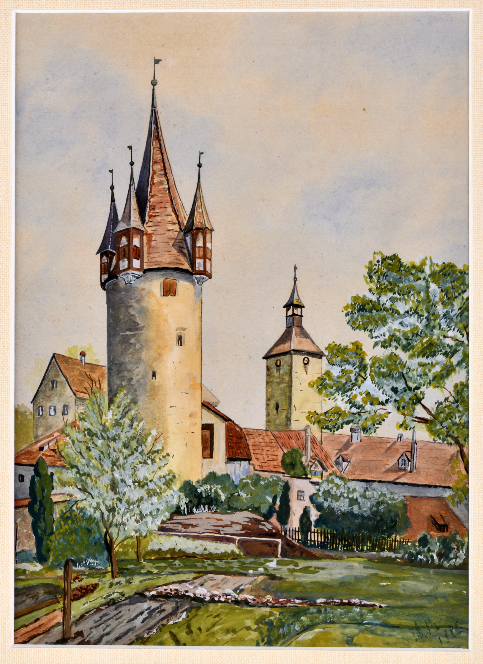 Rámované, paspartované pod sklom.