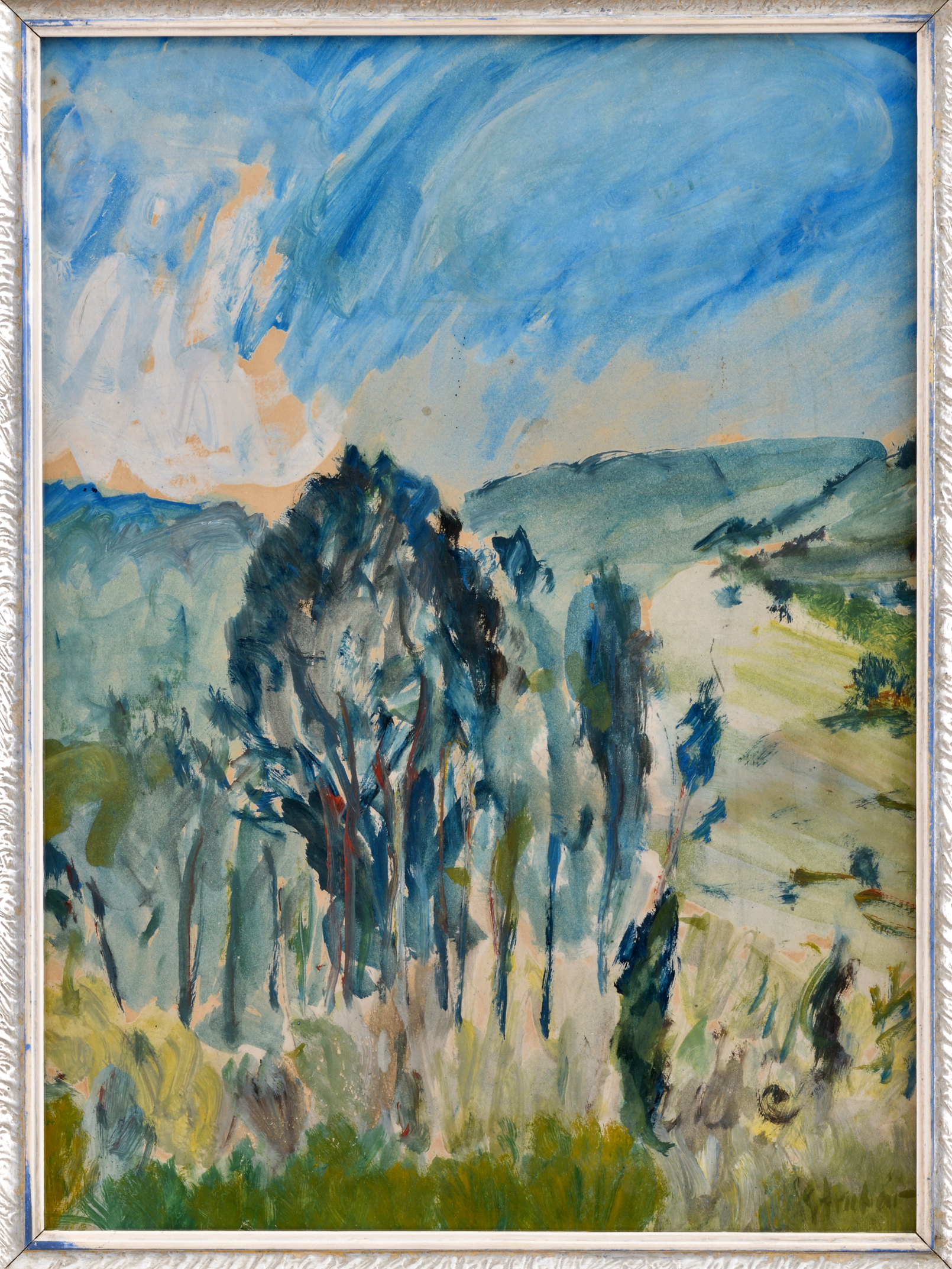 Rámované, paspartované pod sklom.