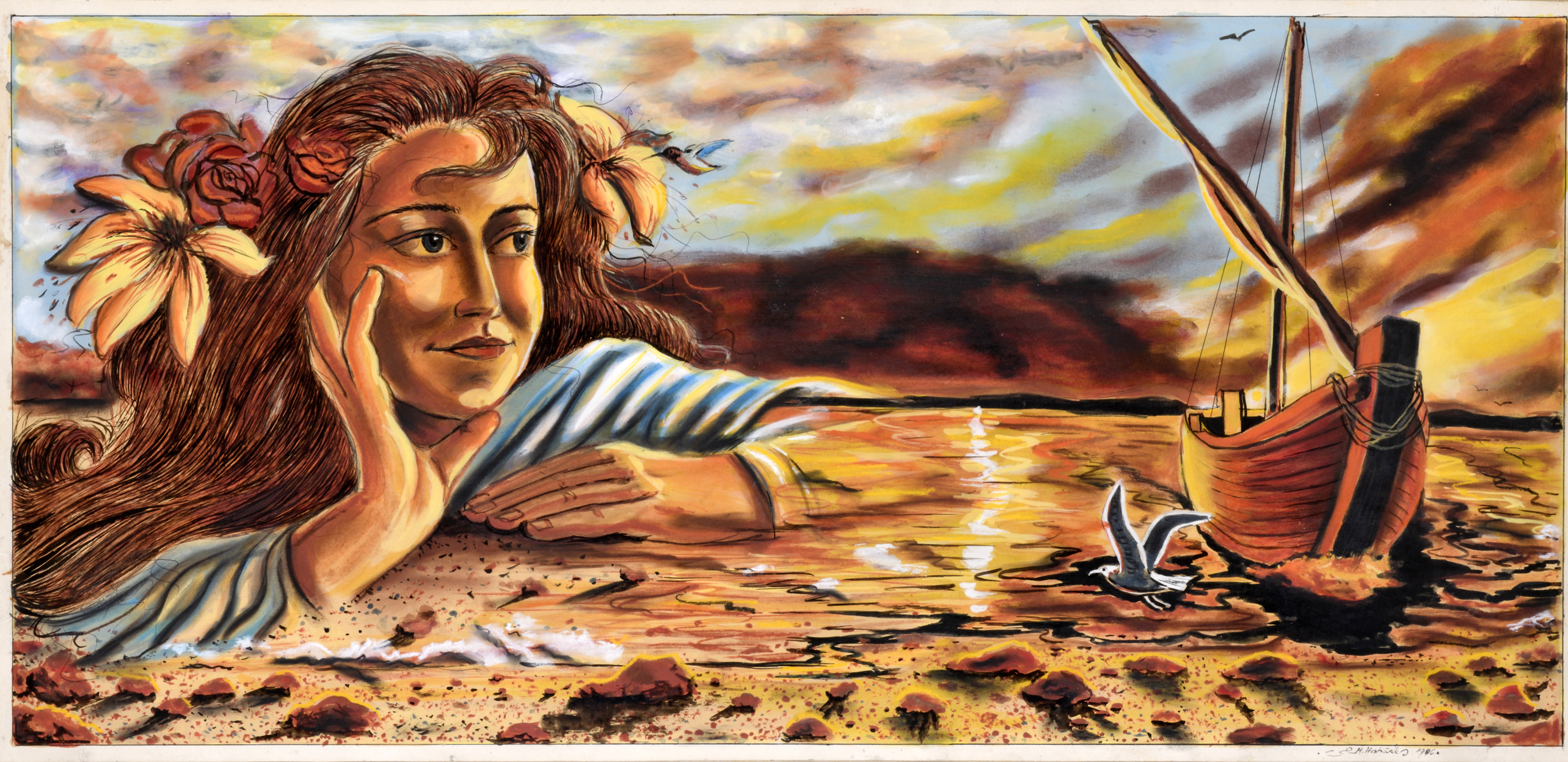 Kombinácia kresbových techník na papieri