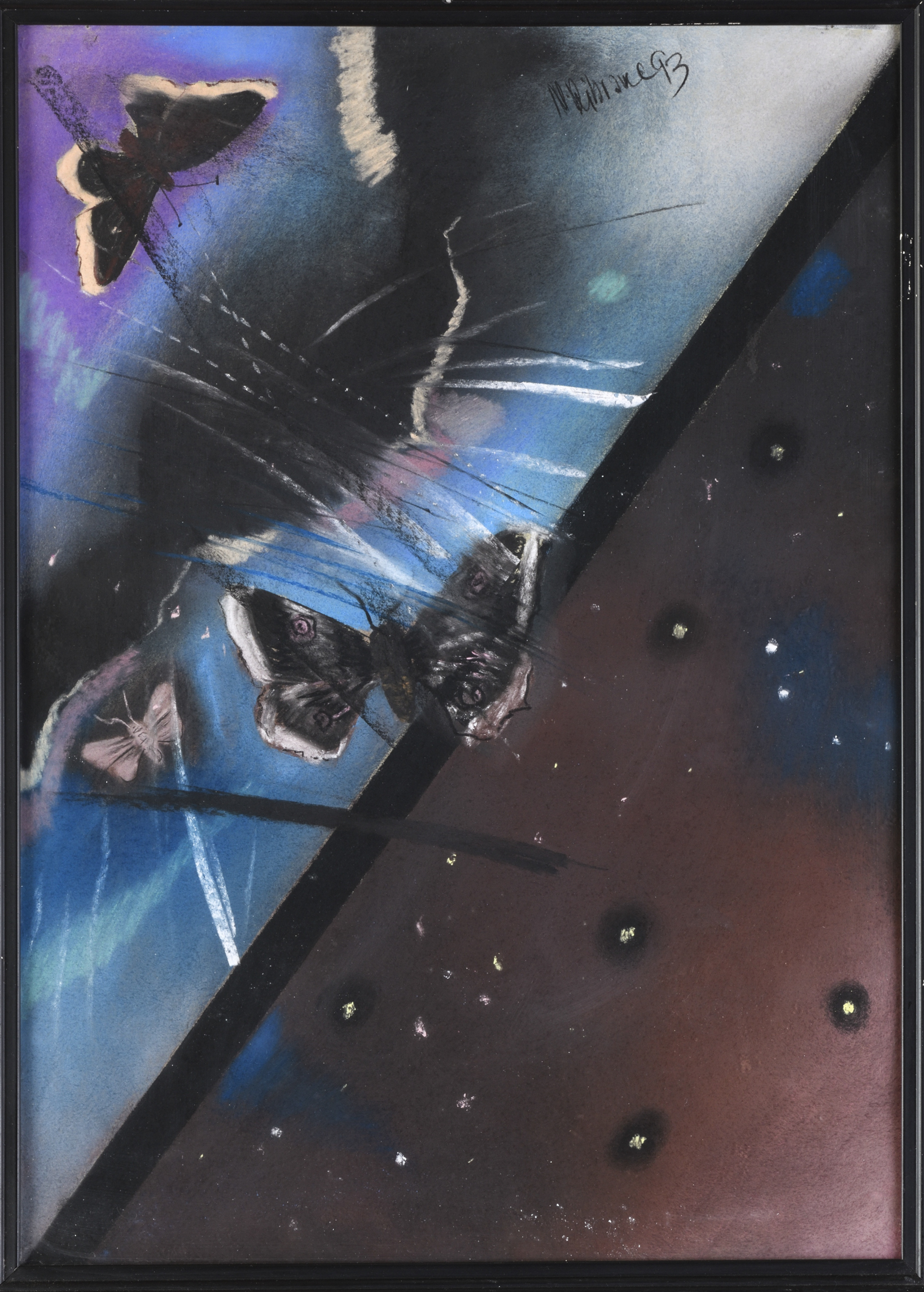 Rámované, paspartované pod sklom.