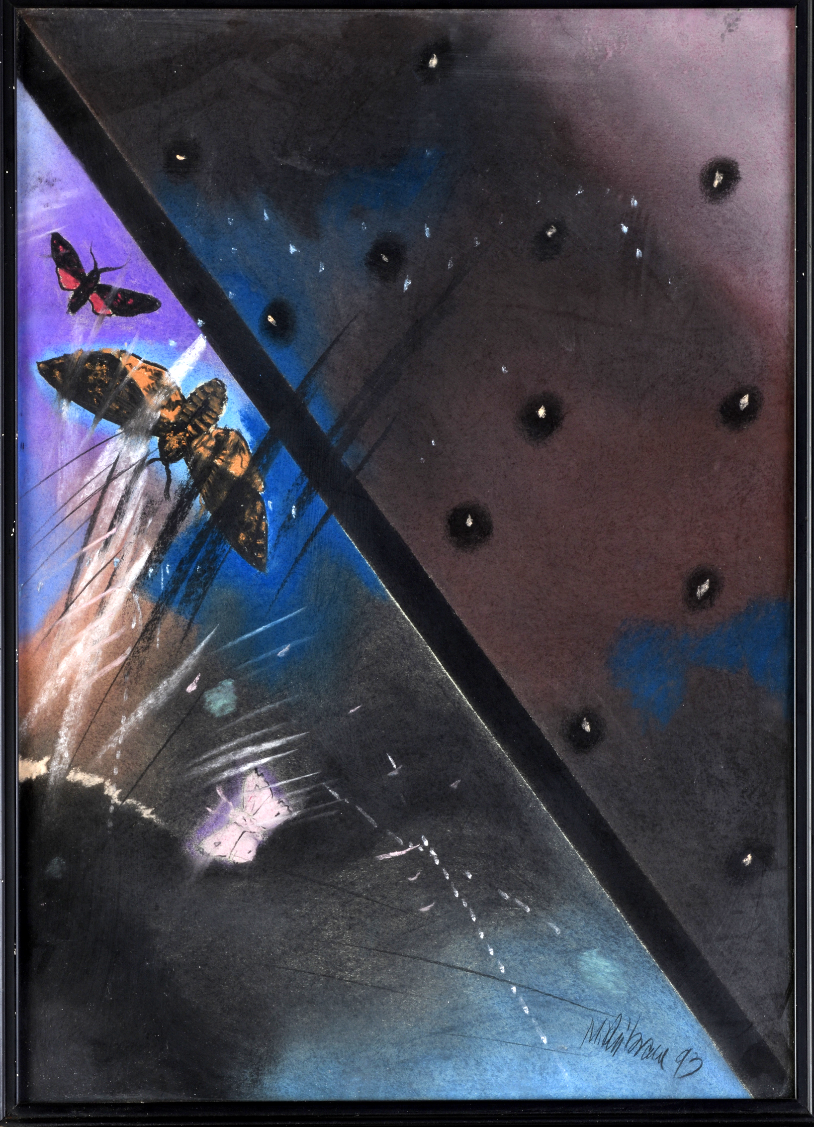 Rámované, paspartované pod sklom.
