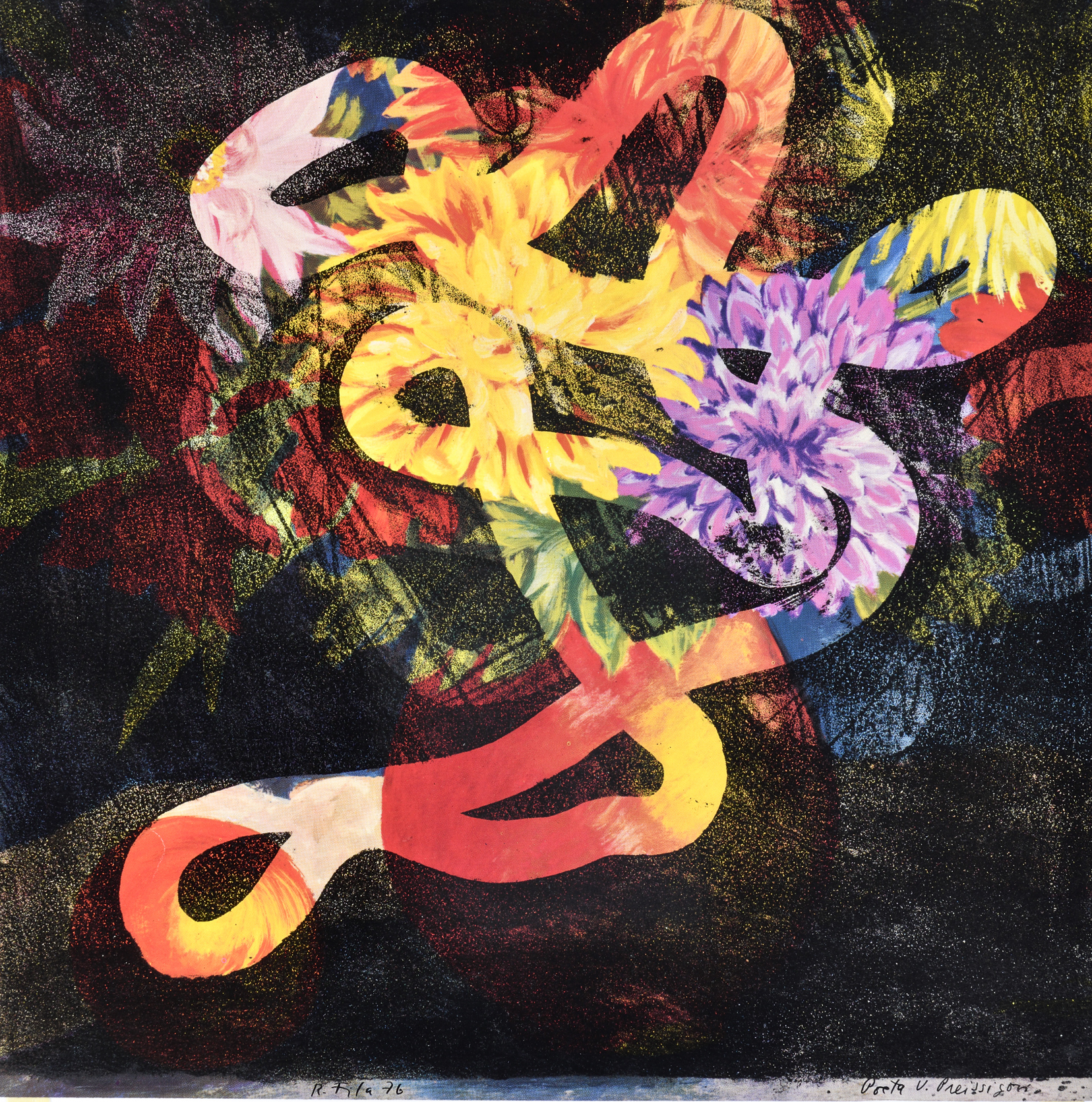 Grafický list zo samizdatového albumu vydanom na pamiatku Miloša Lakyho (1948-1975), ktorý roku 1974 inicioval projekt SYMPOSION (Informácia o priateľskom stretnutí). Zúčastnili sa P. Bartoš, R. Cyprich, S. Filko -M. Laky-J. Zavarský, V. Jakubík, J. Meliš, K. Orlík, R. Sikora, D. Tóth a J. Želibská. Keďže väčšina autorov v tom čase nemohla vystavovať výstupom stretnutia bol veľkoformátový poster s dielami zúčastnených autorov. V rámci akcie Symposion II. (Zmrazená informácia) ktorá na začiatku roka 1975 nadviazala na Symposion I. sa autori rozhodli odovzdať posolstvo budúcnost a pôvodný plagátový formát nahradili svojimi originálnymi dielami. Dielo pôvodne určené k publikovaniu uložili zakopali v lese v Malých Karpatoch. Autori - P. Bartoš, J. Bartusz, S. Filko, J. Zavarský, J. Meliš, R. Sikora, D. Tóth, V. Havrilla, J. Jankovič, M. Kern, G. Kladek a J. Želibská. Na počesť Miloša Lakyho bol potom v roku 1976 vydaný samizdatový album Symposion III – In memoriam Miloš Laky.